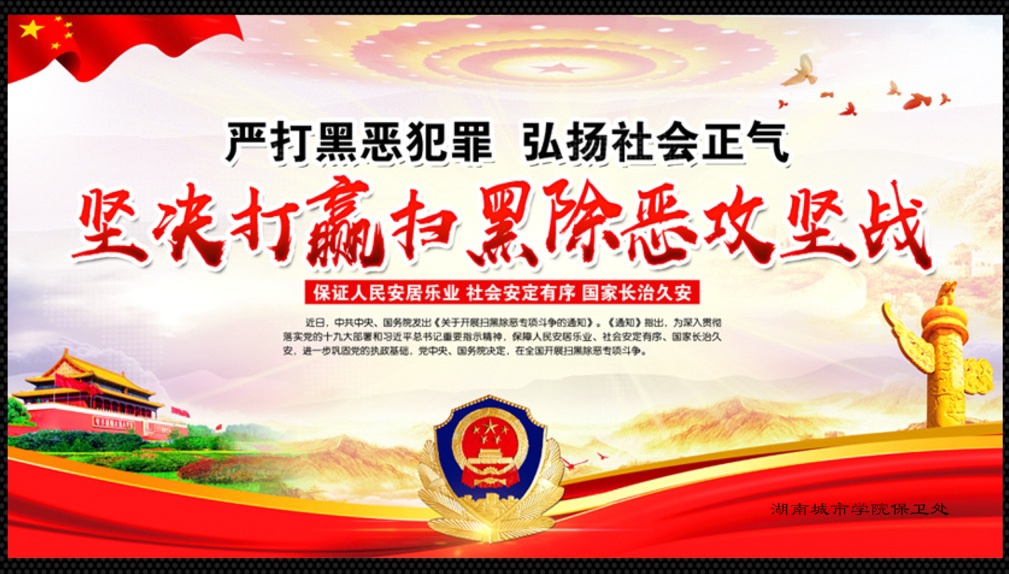 (本网讯)为深入贯彻落实党的十九大部署和习近平总书记重要指示精神和中共中央、国务院《tyc41183太阳成集团开展扫黑除恶专项斗争的通知》精神以及学校tyc41183太阳成集团开展"扫黑除恶专项斗争"工作部署。