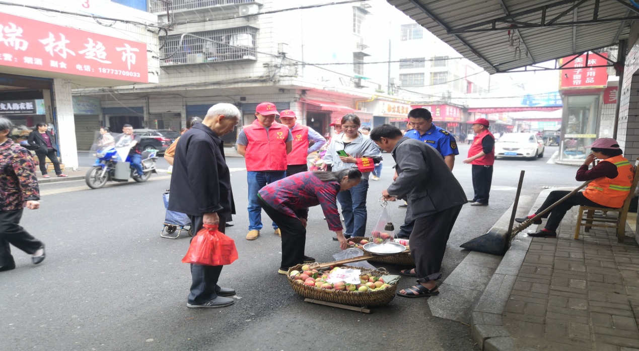 在晓园小区进行路面巡查,及时清理路面零散垃圾;劝导临街门店不店外经营、不随意倾倒垃圾和污水,劝导制止乱扔乱倒、乱堆乱放等行为;引导市民按要求投放垃圾;劝阻攀摘花木、损坏公物、不牵绳遛狗、放养家禽宠物以及在公共场所吸烟、喧哗等不文明行为;劝导市民遵守交规、车辆不乱停乱靠;为市民提供指路、咨询等其他服务。