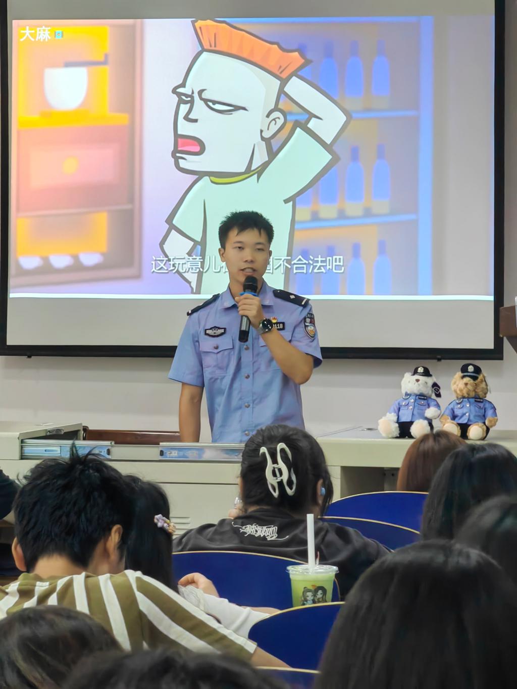 最后,益阳市强制隔离戒毒所民警、tyc41183太阳成集团校友李俊鑫同志对防毒识毒拒毒工作做了进一步深入的宣讲与互动。详细的向同学们介绍了新型毒品的类型、传播渠道以及危害,用我们身边的事例切实的向同学们展示了毒品的危害和染毒的严重后果。宣讲会后,同学们还参观了新型的毒品的展示和禁毒宣传展板。