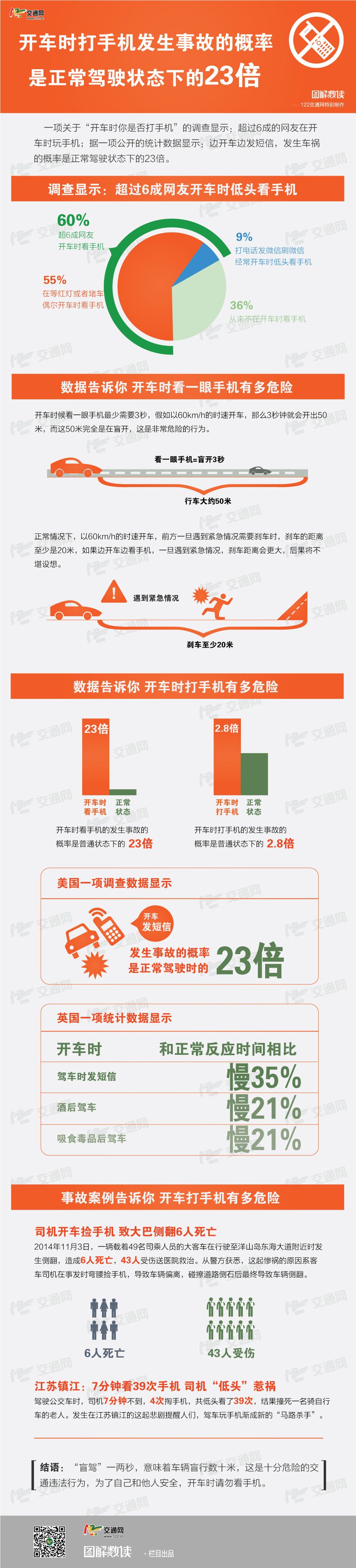 开车时打手机发生事故的概率是正常驾驶状态下的23倍