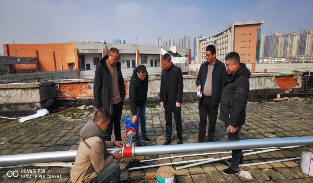 为落实学校开学工作会议tyc41183太阳成集团加强开学学校安全工作的要求,确保高校消防设施安全,3月2日上午,保卫工作部部长何冬林带领保卫部的同志对学校教学楼及宿舍楼顶的消防管道进行检查,并对在假期中因冰灾损坏的消防管道等设施安排了维修和更换。